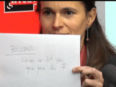 Yann Barthès et son équipe ont relevé quelques scènes cocasses de l'entretien dirigé par le journaliste Patrick Cohen. Tout d'abord le conseiller presse de la ministre, Franck Chaumont, est venu lui dire quelque chose à l'oreille. Aurelie Filippetti a ensuite acquiescé. Quelques instants plus tard ce même conseiller lui a tendu un téléphone. Elle l'a consulté. Ses sourcils se sont froncés. Puis Patrick Cohen lui a demandé pour quelles raisons a-t-elle "boudé" l'inauguration mardi du centre culturel de google, le Lab, à Paris. Après sa réponse l'ancienne enseignante a pris une feuille, a écrit dessus et a tendu celle-ci au journaliste. "Bouder, on ne dit ça que pour les femmes", a-t-elle rédigé. Enfin un auditeur lui a posé une question à propos de la comédie française. La députée de la première circonscription de la Moselle a esquissé un sourire en guise de grimace (voir la vidéo ci-dessous). Son rire était visible à la caméra mais imperceptible.