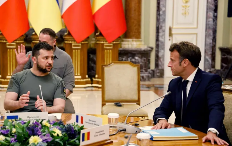 La guerre en Ukraine a commencé le 24 février 2022 lors de l’invasion du territoire ukrainien par les armées russes. La question de la guerre a beaucoup mobilisé Emmanuel Macron : organisation de sommets sur le sujet, appels à Volodymyr Zelensky ou à Vladimir Poutine, énumère Ouest-France. En juin 2022, Emmanuel Macron s’est rendu en Ukraine. Le 16 juin le président ukrainien et le président français se rencontraient pour une séance de travail au palais Mariinsky, à Kiev.