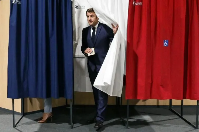 Le 19 juin 2022, Emmanuel Macron vote pour les élections législatives françaises dans un bureau de vote au Touquet, dans le nord de la France. Ces élections marquent un tournant dans le second quinquennat d’Emmanuel Macron. Selon Ouest-France, la majorité obtient 245 sièges. Or, la majorité absolue s’élève à 289 députés. Le parti Renaissance d’Emmanuel Macron n’obtient donc qu’une majorité relative et doit désormais compter sur le soutien d’autres partis pour voter des lois. La majorité ainsi fragilisée rentre dans une ère de doute et de recours à l’article 49.3 de la Constitution.