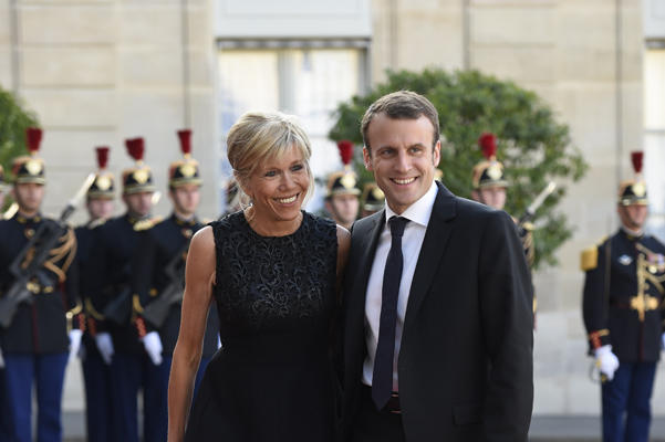 S'il on en croit les confidences rapportées par des journalistes, son épouse Brigitte Trogneux, âgée de 63 ans, ne serait pas étrangère à la réussite de son époux. D'ailleurs, elle était de tous les déplacements de son époux lorsqu'il était ministre : au Puy du Fou, au Musée Soulages, aux meetings d'"En Marche"... jusqu'à mettre en scène leurs vacances à Biarritz dans Paris Match.