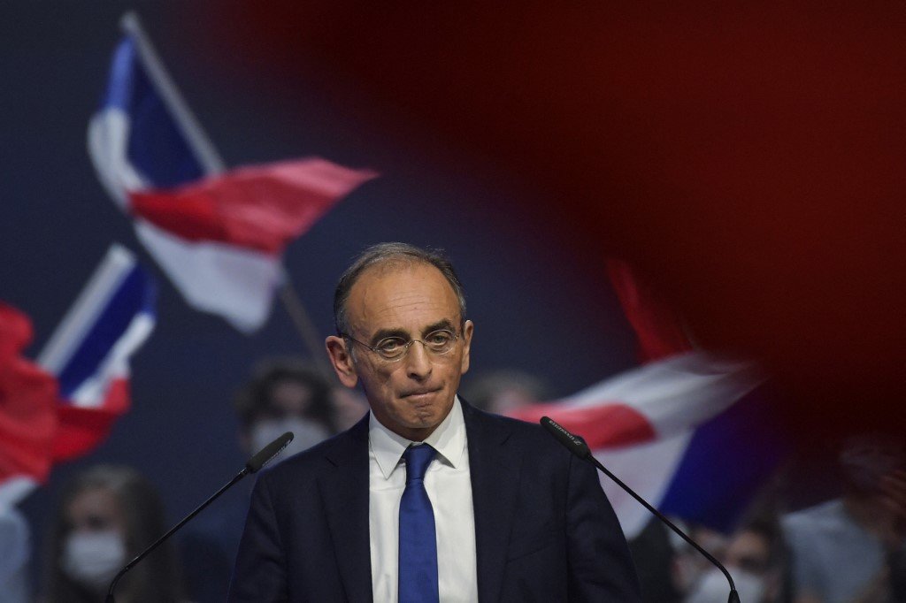 french far-right media pundit and 2022 presidential candidate eric zemmour reacts as he delivers a speech during his campaign rally in villepinte, near paris, on december 5, 2021 (photo by julien de rosa   afp)