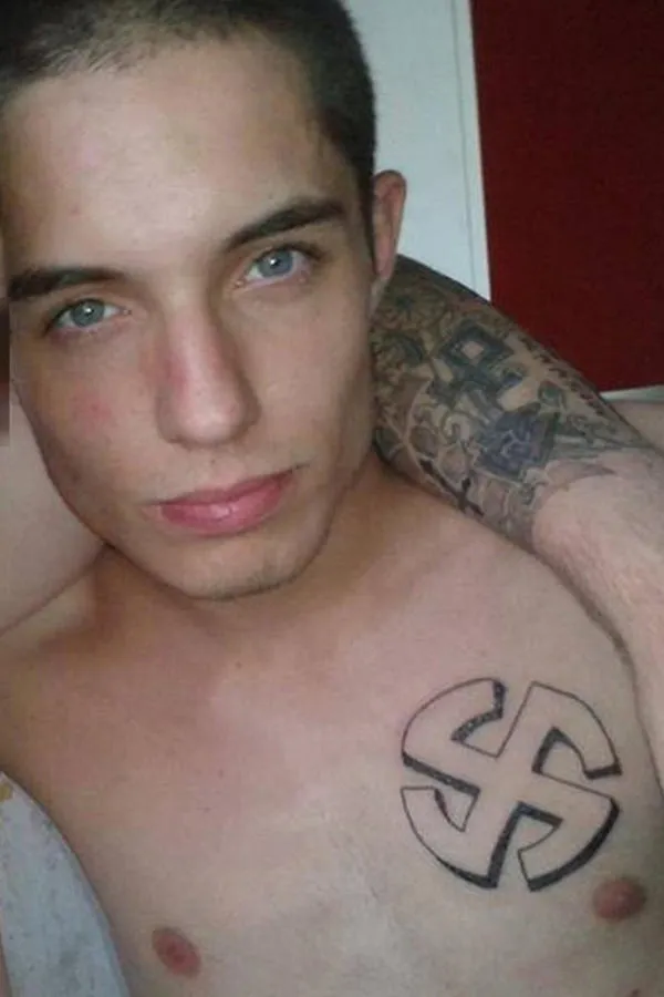 A moins de deux semaines des élections municipales et alors que le Front National a entamé une véritable campagne de dédiabolisation, une photo embarrassante de Marine Le Pen a été dévoilée. Récemment publié sur la page Facebook de "Non au FN", le cliche montre en effet la présidente du parti posant aux côtés d’un jeune homme qui a récemment fait parler de lui. Porte-parole du groupuscule "Sauvons Calais", Kévin Reche s’est fait remarquer il y a quelques années pour le tatouage nazi qu’il s’est fait faire sur le torse au niveau du coeur. Mais alors que le dessin ressemble de très près au symbole d’une division SS, un dérivé de la croix gammée hitlérienne aux bords plus arrondis, le jeune homme s'en est défendu dans les colonnes de la Voix du Nord en affirmant qu’il s’agissait d’un "logo viking".