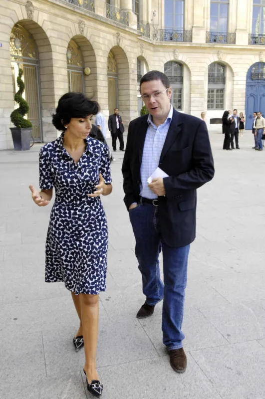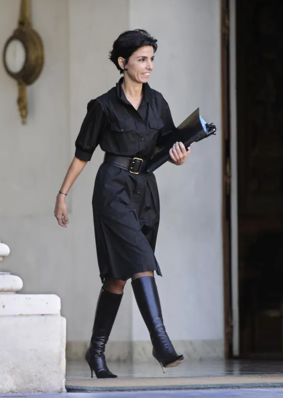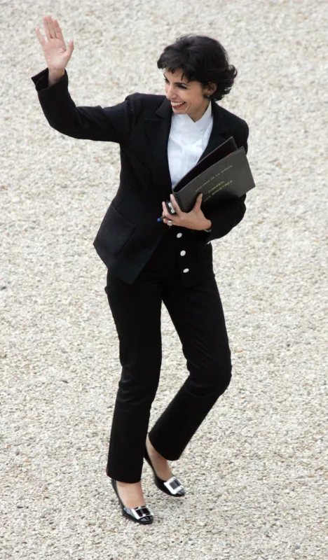 Rachida Dati, en classique tailleur noir et chemisier blanc