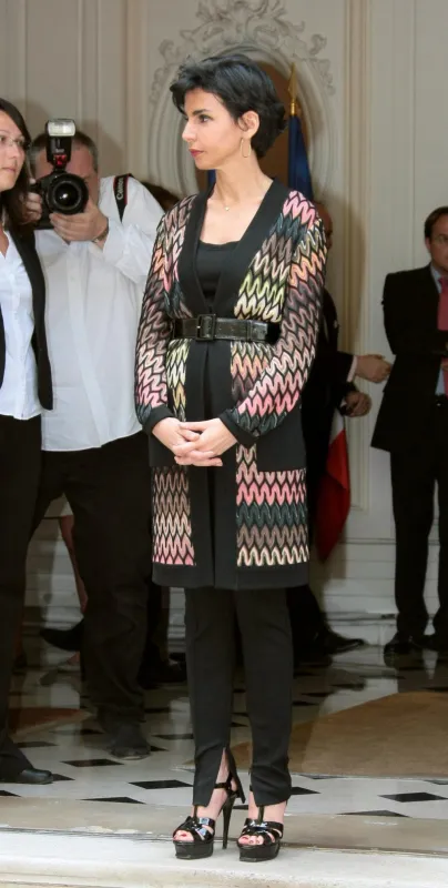 Rachida Dati en tenue noire réhaussée d'une veste colorée