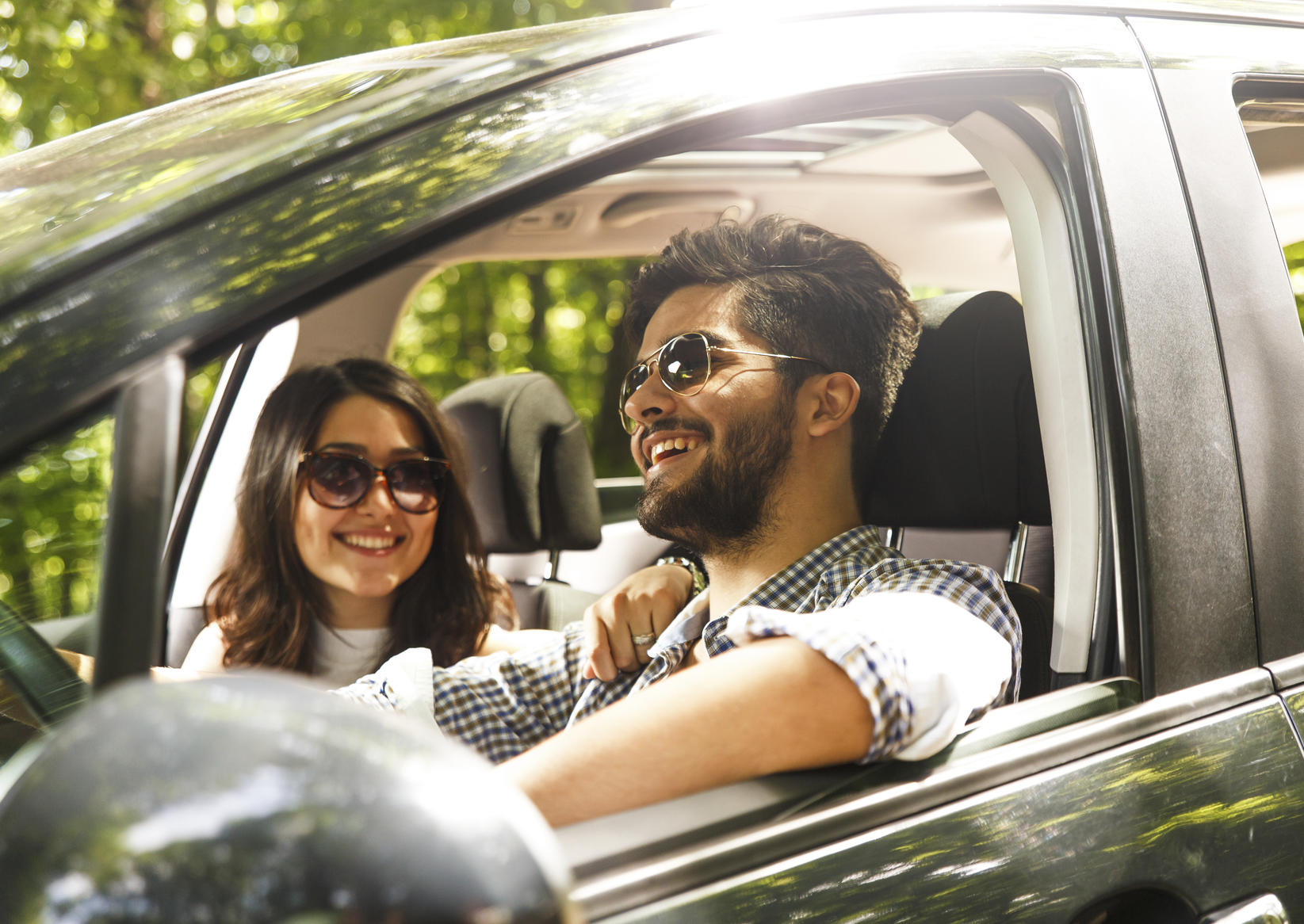 portrait de jeune couple au volant d'une voiture