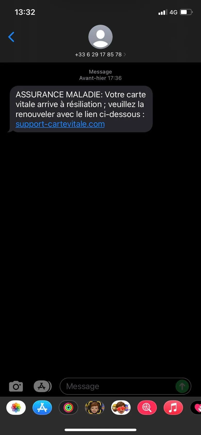 Gare aux tentatives d’arnaque. Si vous avez reçu un SMS provenant à première vue de l’Assurance maladie, méfiance. D’autant plus si l’on vous demande de renouveler ou de mettre à jour votre Carte Vitale. Voici le contenu du message qu'a reçu une journaliste de Planet.fr :
