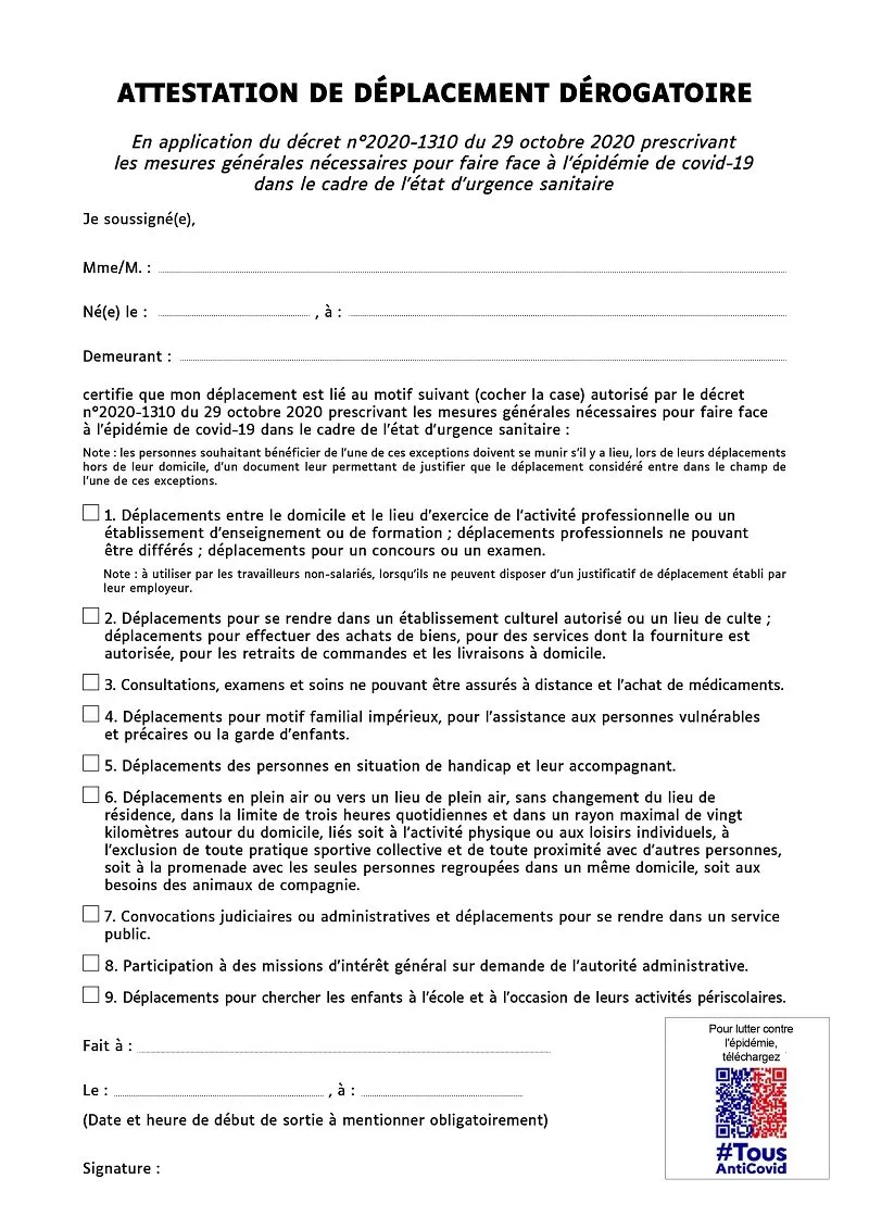 Attestation de sortie : voici la nouvelle version