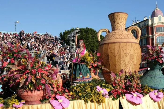 Les défilés de batailles des fleurs sont décidémment très photogéniques. On peut y voir ici une magnifique comédienne se produisant sur scène devant les carnavaliers.