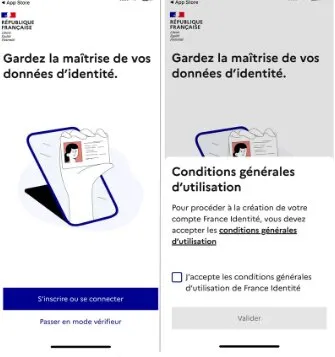 Ensuite, ouvrez l'application et appuyez sur S'inscrire ou se connecter en bas de l'écran et sur l'écran suivant acceptez les conditions générales d'utilisation de France Identité.