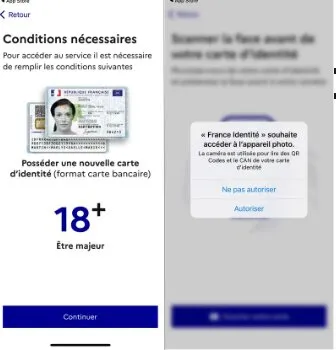 Une fois sur l'écran suivant, appuyez sur Autoriser afin de laisser France Identité accéder à votre appareil photo pour qu'il puisse scanner votre vraie pièce d'identité.
