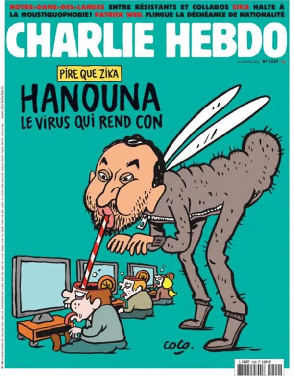 Charlie Hebdo a encore une fois fait fort. Cette semaine, la Une de l’hebdomadaire satirique montre une caricature de Cyril Hanouna, la tête visée sur un corps de moustique. Une créature mi-homme-mi-insecte qui, à l’aide d’une paille, aspire les cerveaux d’enfants en train de regarder la télévision. Le tout surmonté du titre : "Pire que Zika, Hanouna le virus qui rend con". Piquante, cette Une a beaucoup fait réagir sur les réseaux sociaux. De nombreux internautes ont en effet débattu autour de ce dessin signé Coco. Le principal intéressé a lui aussi décidé de réagir.