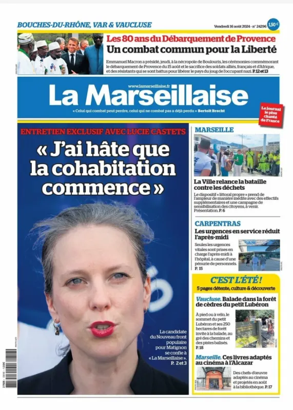 Auprès du magazine La Marseillaise, c'est l'actualité politique qui est mise en lumière, avec Lucie Castets en tête d'affiche. La femme politique continue d'être confiante et souhaite toujours devenir Premier ministre : "J'ai hâte que la cohabitation commence" a-t-elle prononcé.