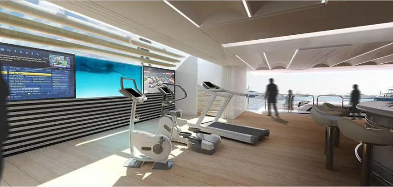 Piscine, chute d’eau, immense salon, piste d’hélicoptère, salle de sport, spa… Tout est prévu pour recevoir au mieux les passagers. Il pourra accueillir à bord entre 16 et 18 invités et 30 membres d’équipage. Il pourrait par ailleurs faire partie des yachts les plus longs du monde, avec une longueur d’environ 107 mètres.