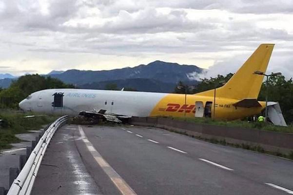 Après un atterrissage en catastrophe, l'avion a bloqué la moitié de la voie
