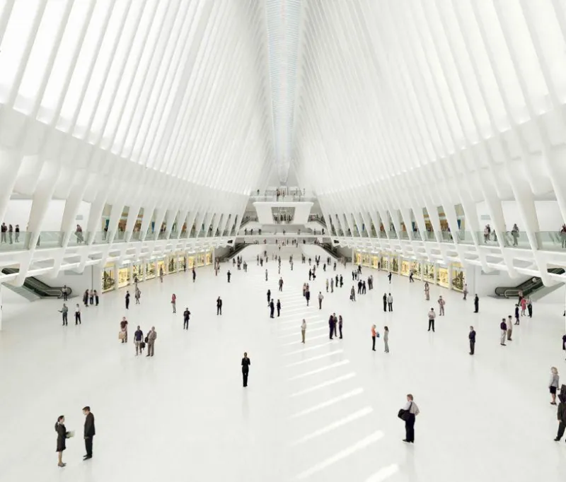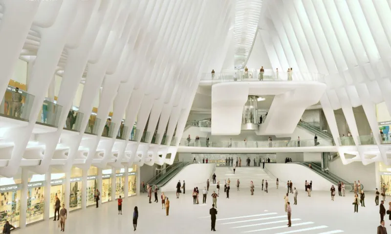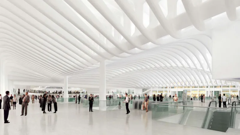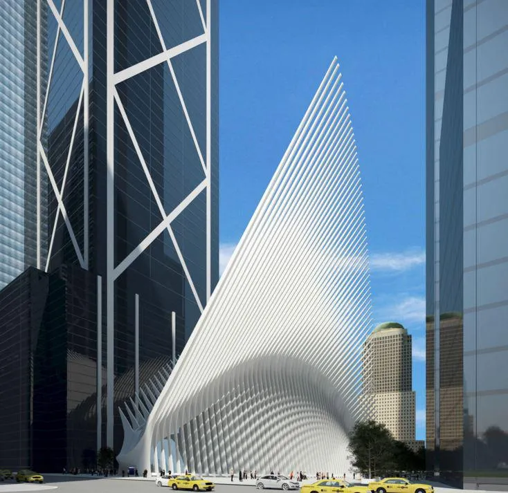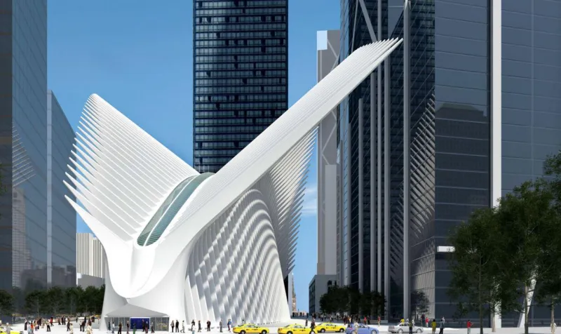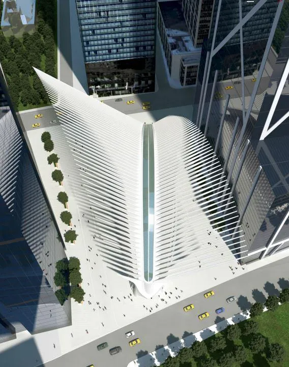 Le bâtiment, imaginé par le cabinet d'architecture de Santiago Calatrava, est impressionnant. Le grand hall qui accueille les voyageurs fait 111 mètres de long et abrite également un très grand centre commercial de 34 000 mètres carrés. La gare permettra de relier la navette qui dessert le New Jersey ainsi que 11 lignes de métro. Le projet devait au départ coûter "seulement" deux milliards de dollars, mais la ville aura finalement dû payer pratiquement le double.