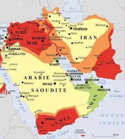 Au Proche-Orient, il est déconseillé de se rendre en Syrie et en Irak (présence de Daech), au Yémen, ainsi qu'à l'est de l'iran.