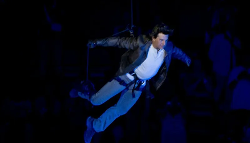 L’acteur de 62 ans, s’est jeté dans le vide depuis le toit du stade (retenu par des câbles heureusement). Il est reparti à moto, drapeau olympique en main.