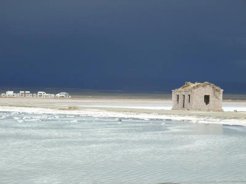 À 3650 m d’altitude, Salar d'Uyuni est le plus grand désert de sel du monde. Sur 40 m d’épaisseur alternent couches de sel et de glaise. L'endroit est fascinant par sa blancheur, qui s'étale à l'horizon jusqu'à l'infini. Sur le lac, on peut trouver quelques îlots avec des cactus de 10 à 12 m de haut. Quelques tas de sel gisent çà et là, témoins de la présence de l'homme malgré le caractère aride de l'endroit.