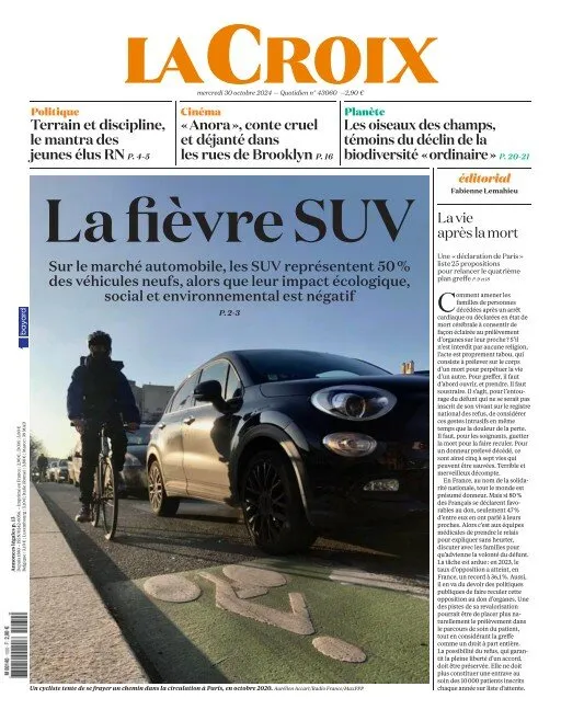La Croix propose un débat autour des voitures SUV. Encore très populaires aujourd'hui, elles sont néanmoins jugées particulièrement polluantes. Certaines villes, à commencer par Paris, tentent de les éloigner du centre-ville à travers un prix de stationnement bien plus élevé que pour les autres véhicules. Le développement du SUV pourrait en effet compromettre "l'aspect social de la transition vers la voiture électrique". Paradoxalement, le bonus écologique pour la voiture électrique sera moins avantageux en 2025.