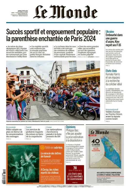 Le Monde titre sur les Jeux olympiques ce mardi 6 août. Le journal évoque une "parenthèse enchantée" et un "engouement populaire", avec des millions de supporters français prêts à soutenir leur équipe. Records de médailles françaises, exploits sportifs... Les Jeux olympiques se tiendront jusqu'au dimanche 11 août, avant le début des Jeux Paralympiques, prévus du 28 août au 8 septembre.