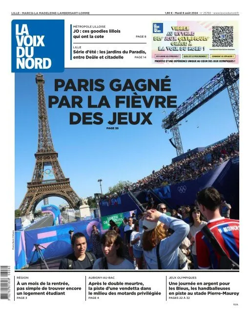 Même engouement du côté de la Voix du Nord aujourd'hui. Ici, les JO ont fait grimper la température à Paris, le tout dans une météo désormais ensoleillée mettant davantage en avant la ville lumière. Les supporters et les touristes sont en nombre dans la capitale. Le rayonnement de Paris n'est désormais plus à prouver.