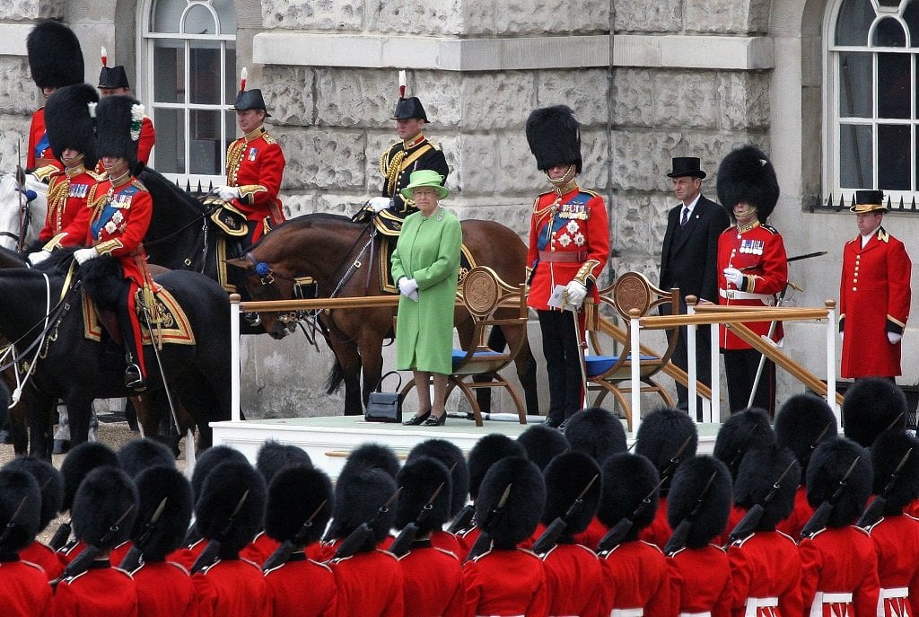Avec leur long chapeau en fourrure et leur jaquette rouge carmin identifiable entre mille, les gardes royaux sont un emblème de la monarchie, et protègent les monuments comme le palais de Buckingham depuis 1660.