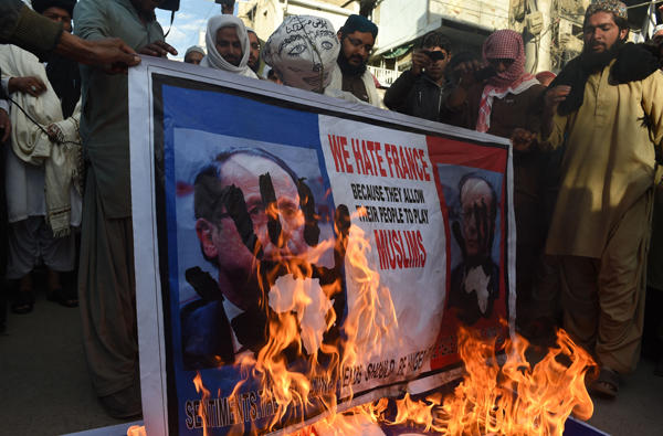 A Quetta, dans le sud-ouest du pays, des protestataires ont piétiné et brûlé des drapeaux français et des photos de François Hollande.