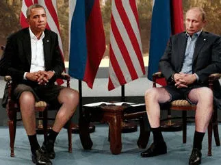 Pas de budget, pas de pantalon : Obama et Poutine en caleçon !