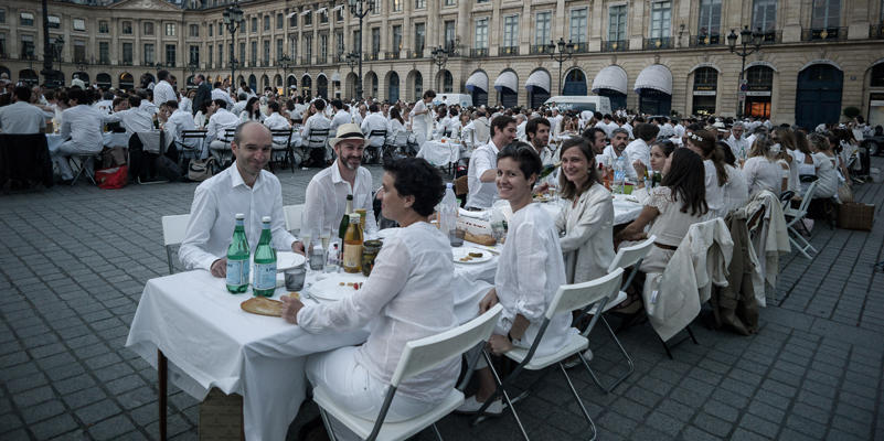 Chic oblige, tous les participants étaient cooptés et n’ont appris le lieu où aurait lieu le dîner qu’au dernier moment, grâce à un jeu de pistes. Pour participer à cet évènement, tous devaient également respecter un dress code : du blanc et rien que du blanc, mais aussi apporter leur table, chaises, nappe et repas. Exit les couverts en plastique. Pour jouer le jeu, tous devaient par ailleurs venir avec des verres en verre, des couverts en métal ou en argent et des bougies.