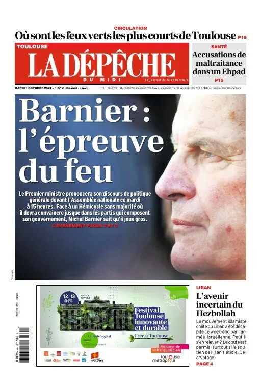 C'est le grand jour pour Michel Barnier. Le Premier ministre va présenter son discours de politique générale aujourd'hui à 15 h à l'hémicycle de l'Assemblée nationale, le tout sans majorité. Un exercice nécessaire, mais décisif pour l'avenir de ce nouveau gouvernement déjà très controversé. Parmi les sujets attendus : les hausses d'impôts, l'éducation, le pouvoir d'achat et bien sûr un axe sur les questions régaliennes : la justice, la sécurité et l'immigration, confirme La Dépêche du Midi.