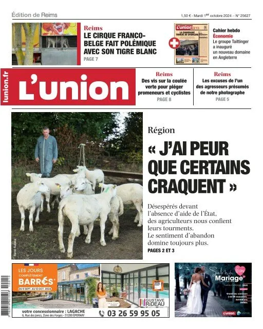 En pleine période d'instabilité politique, le monde agricole va mal. D'un côté, l'arrivée de la fièvre catarrhale ovine "a frappé de plein fouet les éleveurs en août et septembre" confirme L'Union. De l'autre, à cause d'un soleil particulièrement timide et de pluies jugées "abondantes", les moissons ont été cette année particulièrement mauvaises, "voire catastrophiques" dans certains départements, notamment dans le Grand-Est.