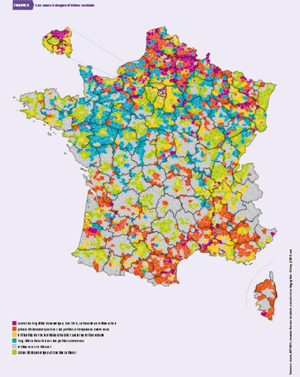 Toutes les banlieues ne riment pas avec échec et décrochage scolaire. Bien que la Seine-Saint-Denis, Vaulx-en-Velin (Rhône) et Hérouville-Saint-Clair (Calvados) soient souvent les témoins de fragilités économiques, familiales et socio-culturelles, les milieux ruraux sont eux aussi très touchés par ce phénonème. Le collège de Vimoutiers (Orne) en est un bon exemple puisqu'il est classé en zone d'éducation prioritaire. Cette réalité n'épargne pas non plus les régions touristisques telles que le Languedoc-Roussillon ou la Corse littorale qui sont plus concernées par une certaine précarité économique. Sur l'île de Beauté, 36,5% des 15-24 ans sont sans diplôme et non scolarisés.