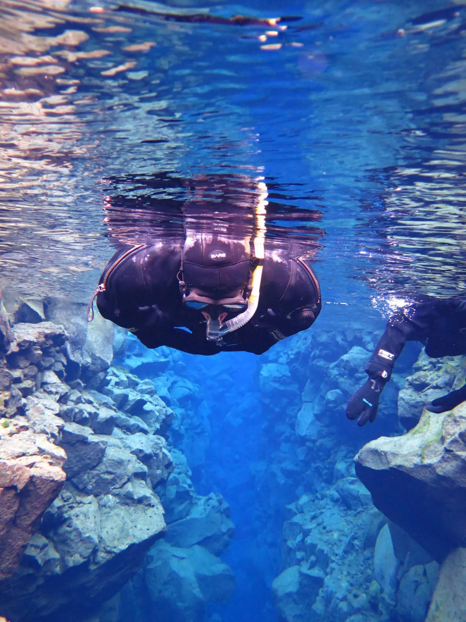 Située dans le fameux parc national de Pingvellir, cette faille est réputée dans le monde entier comme faisant partie du top 3 des meilleurs spots de plongée du monde. La visibilité peut aller jusqu’à 300 mètres devant soi. C'est monstrueux ! On se sent tout petit face aux forces de la nature. L'eau approche les 0°C degré, mais pas de panique, vous avez une double combinaison rembourrée, des gants, et un masque qui vous feront oublier la fraîcheur de l'eau. Sachez qu'il est possible de le faire avec un guide français chez dive.is. Il s'appelle Thomas, et il est très sympathique.