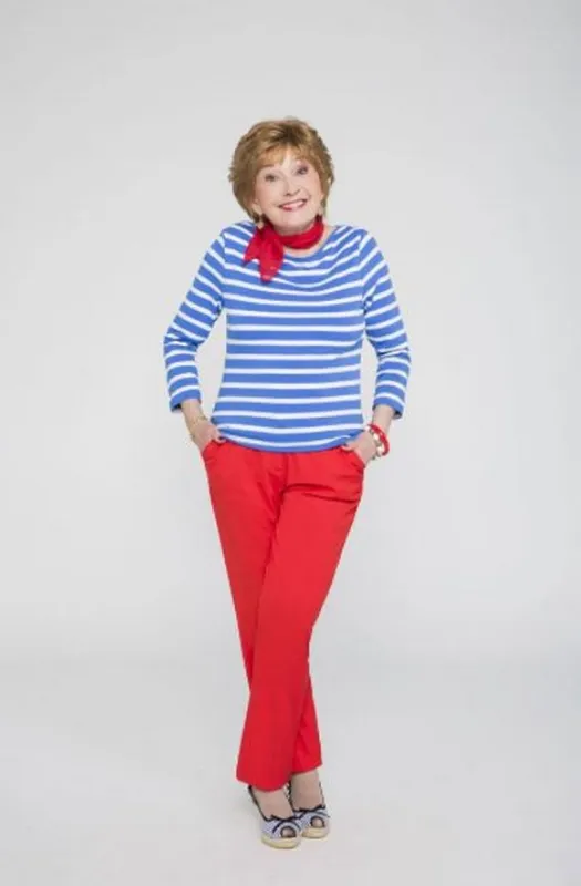 Plus sage, mais tout aussi coloré, la fringante Huguette adopte un style typiquement "bleu blanc rouge" dans Scènes de ménages.
