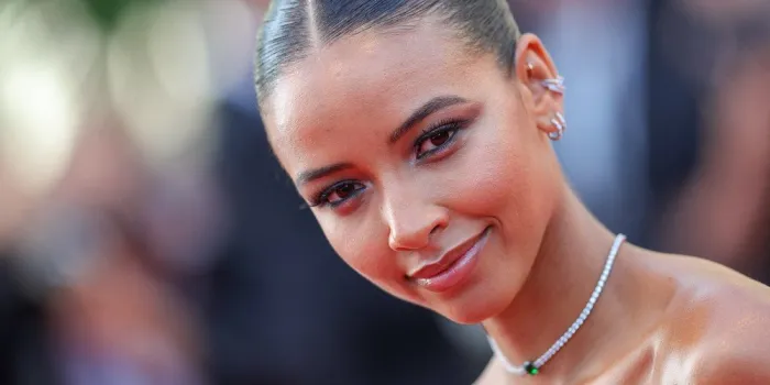 Flora Coquerel prenant la pose dans une robe mauve ultra canon.