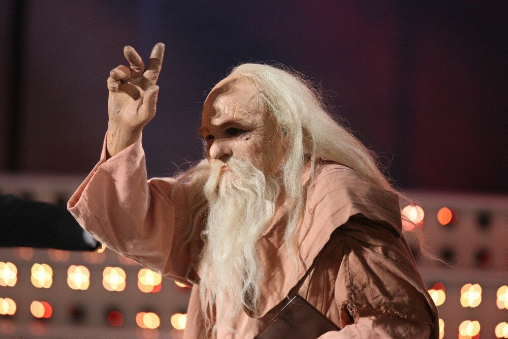 Si son visage et ses cheveux laissent penser que cet homme serait âgé de centaines d’années, c’est en réalité une personnalité bien différente qui se cache derrière le masque. Il s’agit de Yann Le Gac, un comédien originaire du Morbihan âgé de 68 ans.