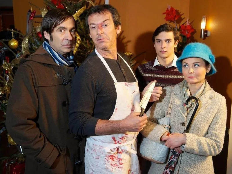 Invité dans un épisode spécial de Noël, le comédien jouait le boucher et nouveau voisin de la famille Dubernet-Carton (ici en compagnie de Thierry Samitier, Christelle Reboul et Jules Frisson).