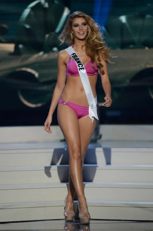Camille Cerf, alias Miss France 2015, lors de son défilé en bikini au concours de Miss Univers en 2014.