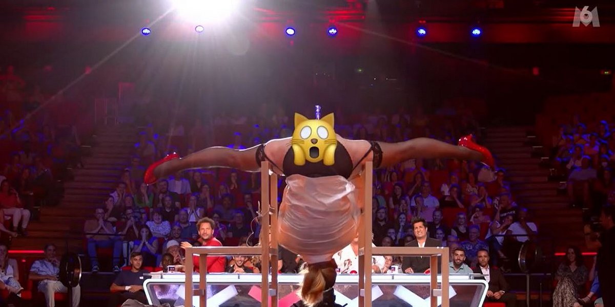 "Je ne m’attendais pas du tout à ça", s’exclame Éric Antoine face à une Hélène Ségara inquiète face à ce qui se déroule sous leurs yeux. Et pour cause, l’Australienne s’installe pour jouer de la flûte avec ses parties intimes. Et, de basculer en arrière sur deux chaises, les jambes écartées où l’on peut voir l’instrument inséré dans son vagin.