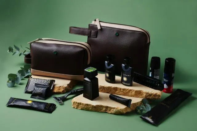 Sur la plupart des compagnies, vous recevrez pour votre vol une ou comme ici deux trousses de toilette. L'une avec tout le nécessaire dédié, l'autres avec des produits de luxe : cosmétiques, parfums, dédodorants... Même les trousses sont faites en cuir de haute qualité.